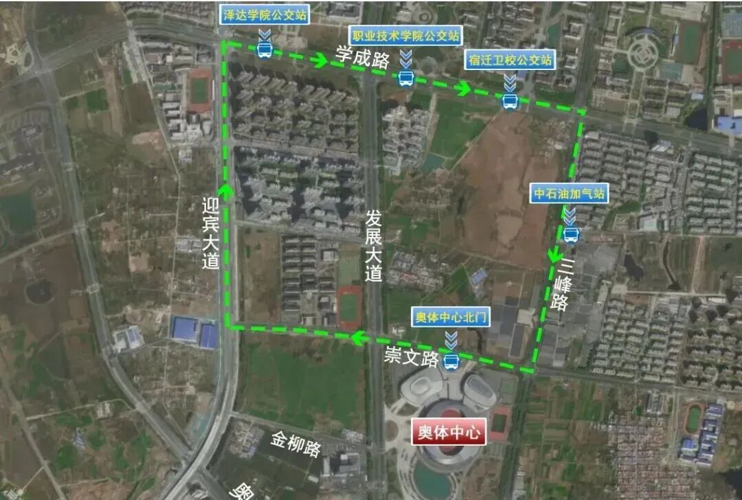 學(xué)成路停車(chē)區(qū)—奧體中心(循環(huán)擺渡):迎賓大道——學(xué)成路——三峰路——崇文路(奧體北門(mén))