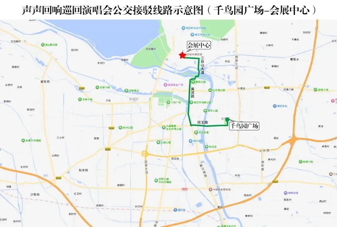線路一:宿豫區(qū)千鳥(niǎo)園廣場(chǎng)接駁點(diǎn)