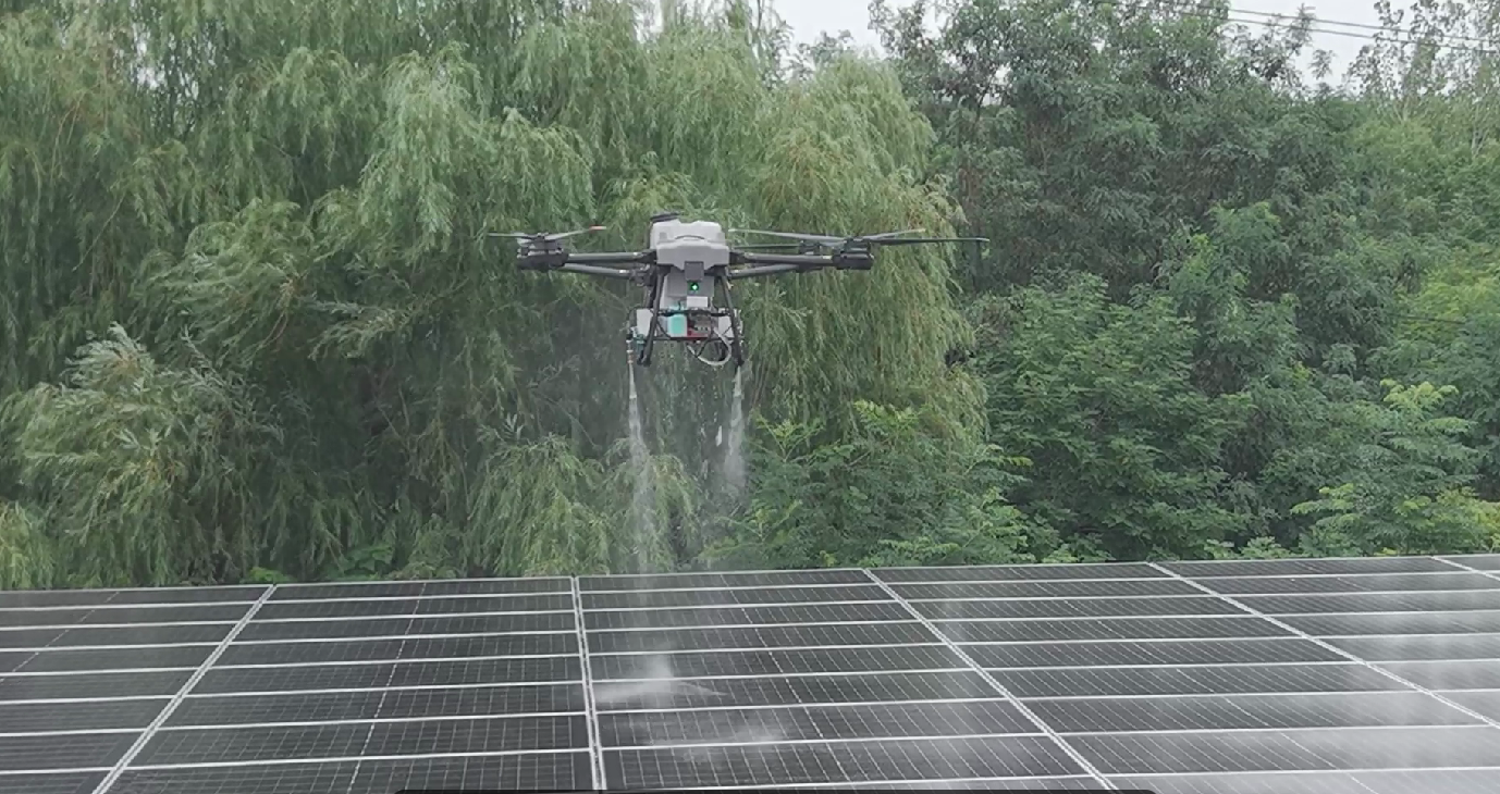 在光伏電站,無人機則變身“清潔能手”,開展光伏板清洗作業(yè)。它能夠精準(zhǔn)定位光伏板上的污垢和灰塵,隨后配合高壓水槍與特制清潔液,高效且安全地完成清洗任務(wù)。